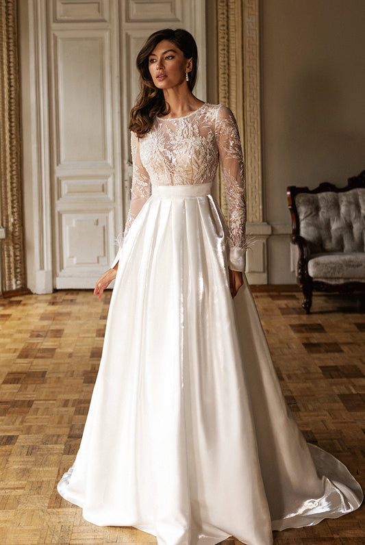 Blackie A-line Jewel Milk/Nude Wedding dress