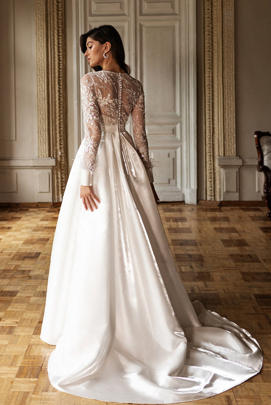 Ruslana A-line Deep V-neck Milk Wedding dress
