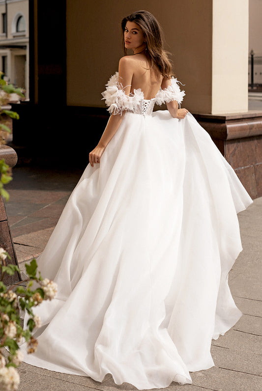 Moss A-line Off-shoulder/Drop shoulders Milk Wedding dress