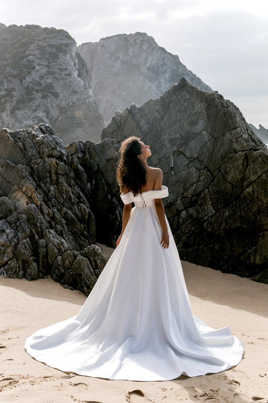 Bruni A-line Off-shoulder/Drop shoulders Off White Wedding dress