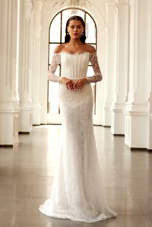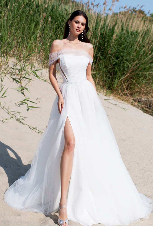 Bruni A-line Off-shoulder/Drop shoulders Off White Wedding dress