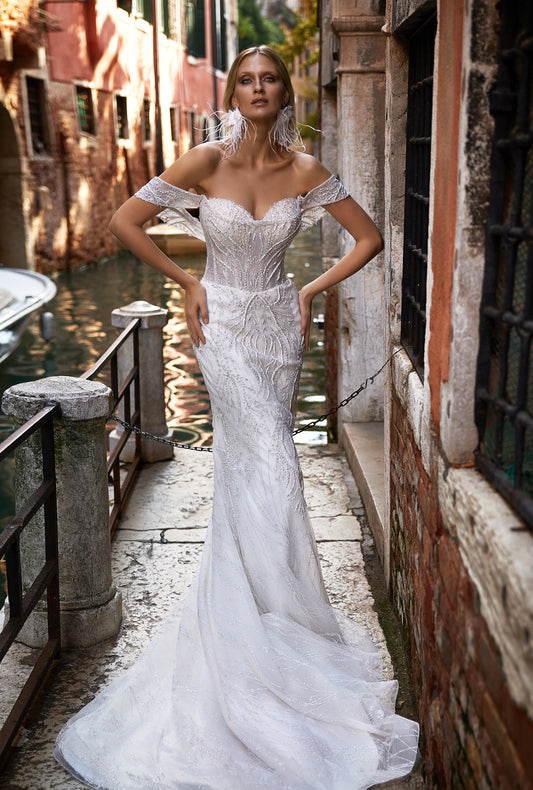 Arabela Trumpet/Mermaid Off-shoulder/Drop shoulders Milk Wedding dress