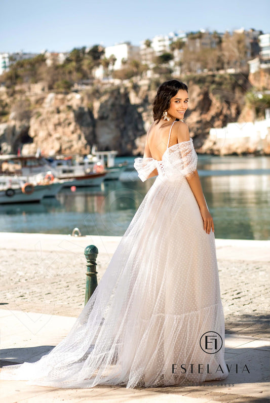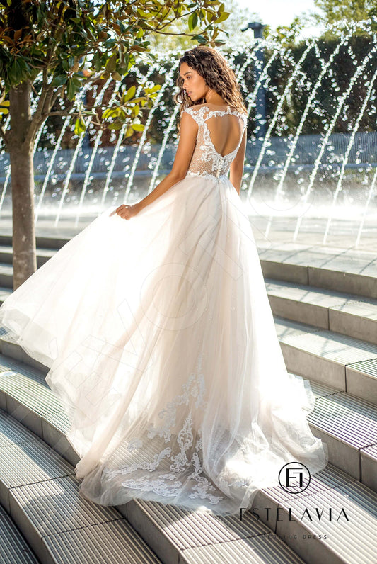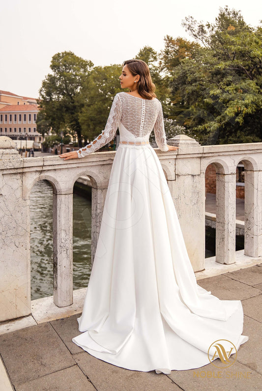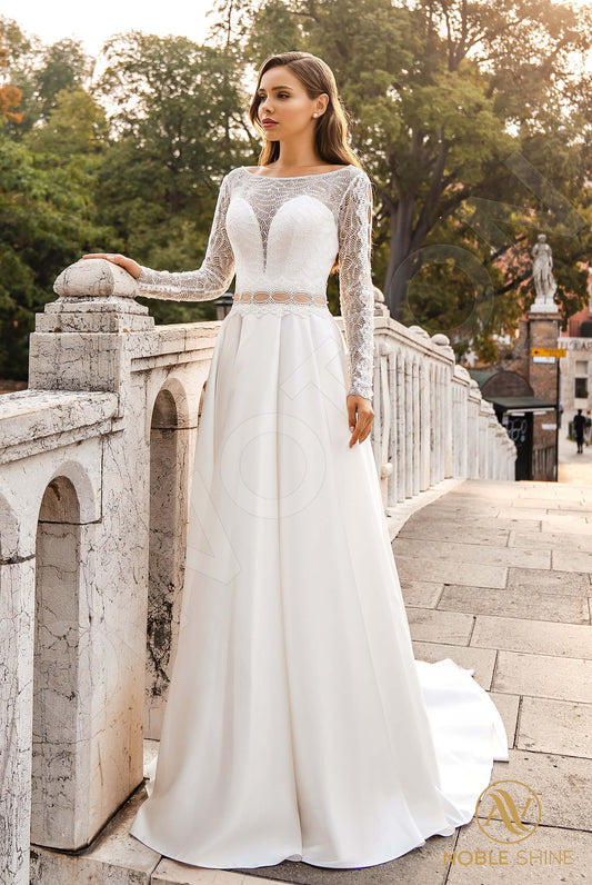 Letizia A-line Boat/Bateau Milk Wedding dress