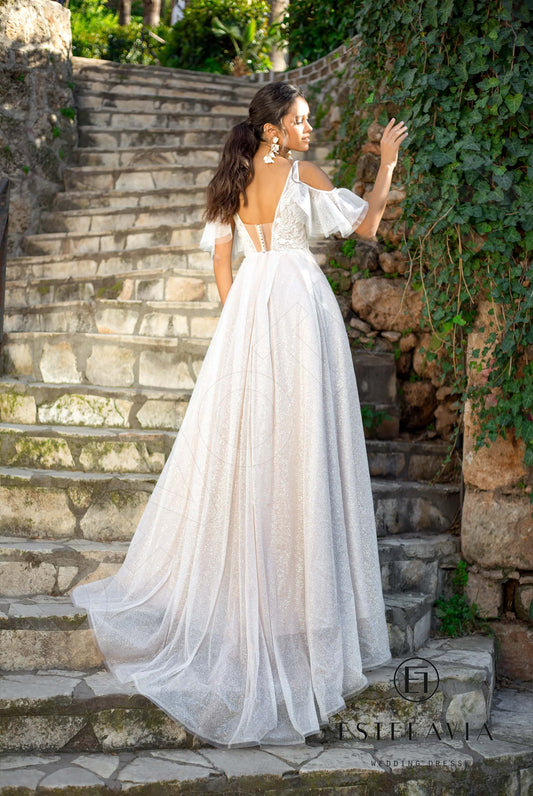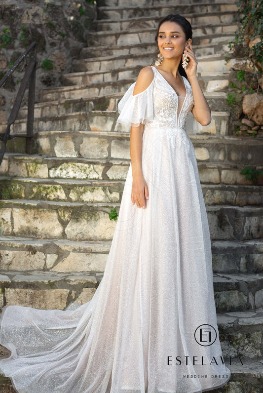 Letty A-line V-neck Milk Cappuccino Wedding dress