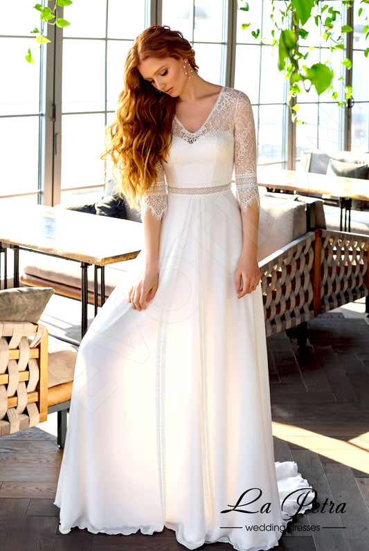 Anaria A-line Boat/Bateau Ivory Wedding dress