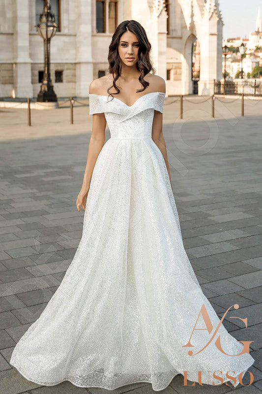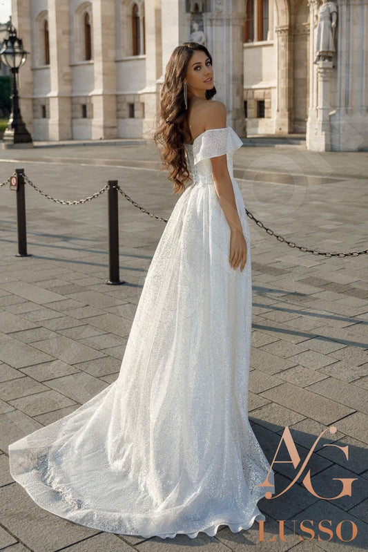 Libby A-line Off-shoulder/Drop shoulders Ivory Silver Wedding dress