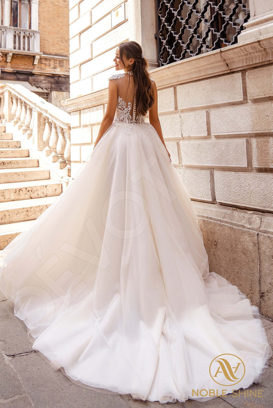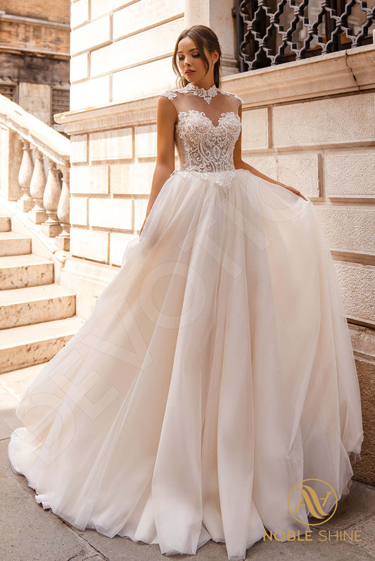 Theothilla A-line High neck Milk Cappuccino Wedding dress