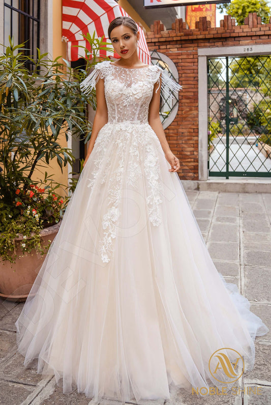 Conchita A-line Jewel Milk Cappuccino Wedding dress
