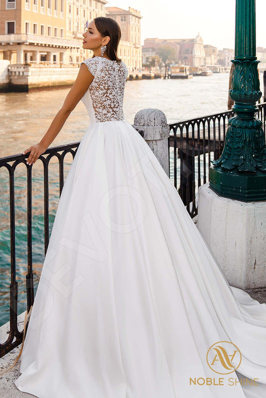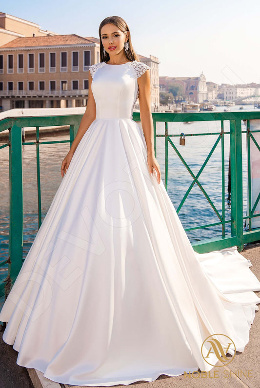 Mareta A-line Boat/Bateau Milk Wedding dress