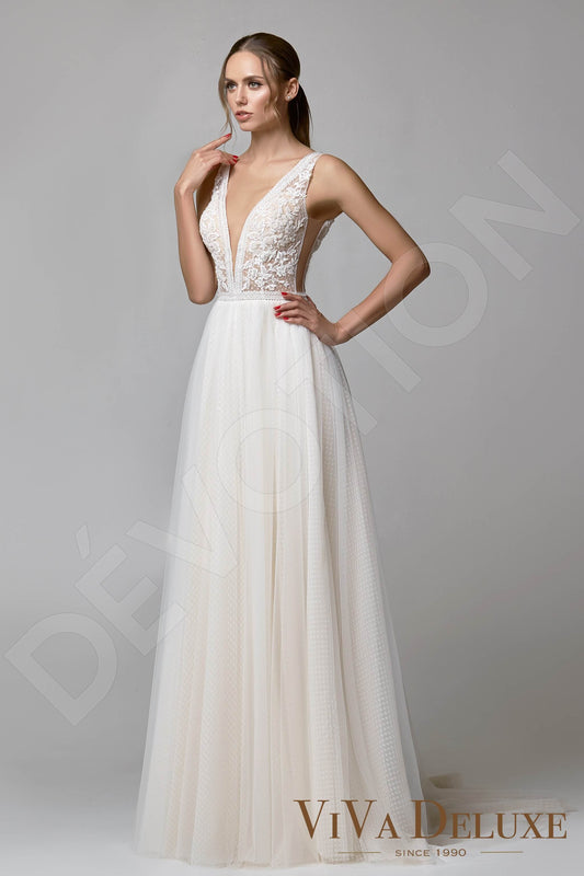 Palmer A-line Deep V-neck Ivory Nude Wedding dress