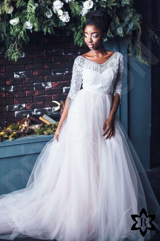 Ariadna A-line V-neck Milk Peach Wedding dress