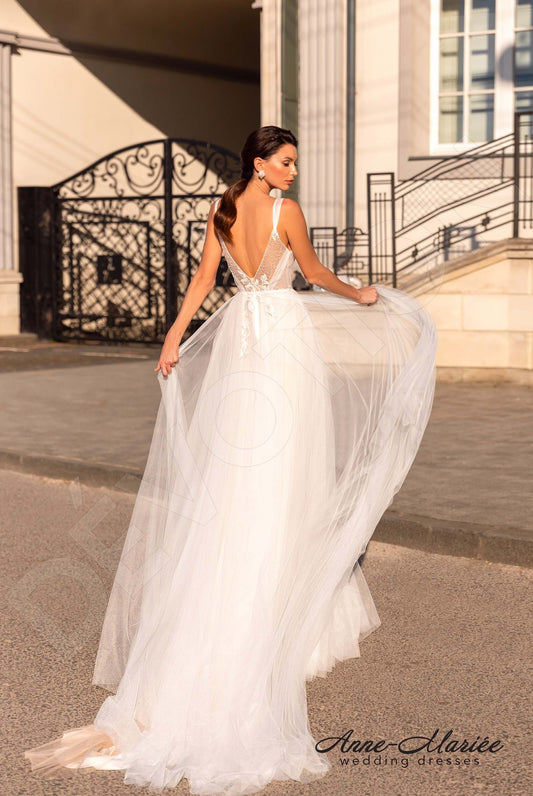 Lakres A-line Deep V-neck Milk Nude Wedding dress