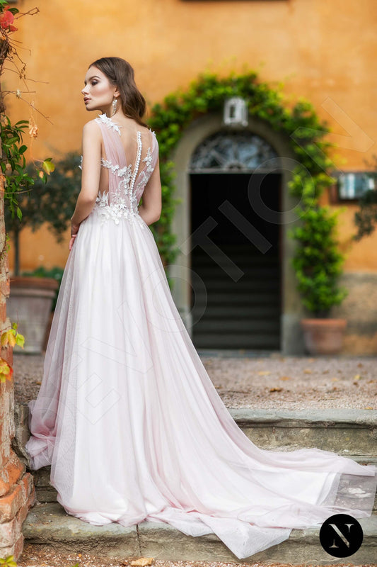 Casey A-line Deep V-neck Milk Blush Wedding dress