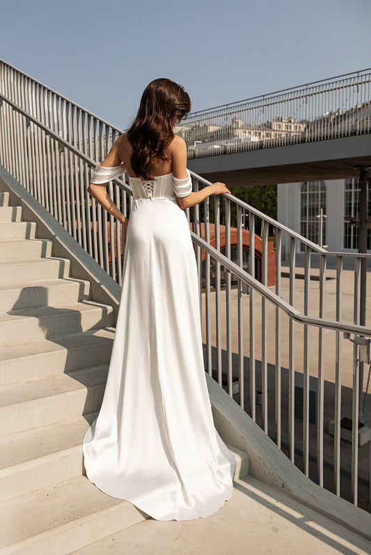 Scarlett A-line Off-shoulder/Drop shoulders Milk Wedding dress