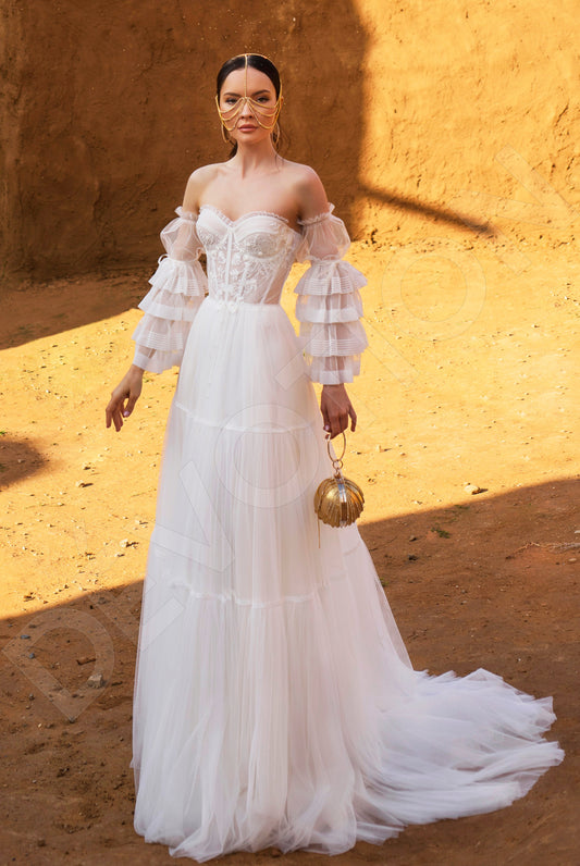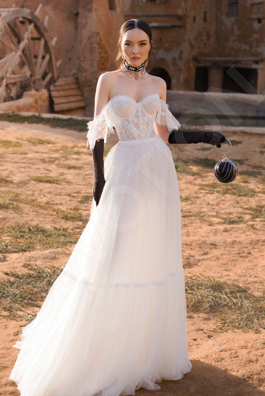 Bruni A-line Off-shoulder/Drop shoulders Off White Wedding dress