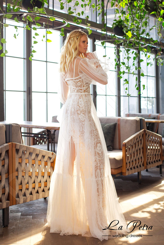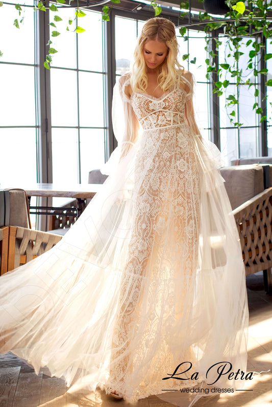 Lyuza A-line V-neck Milk Cream Wedding dress
