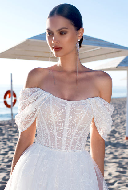 Fila A-line Off-shoulder/Drop shoulders Off White Wedding dress