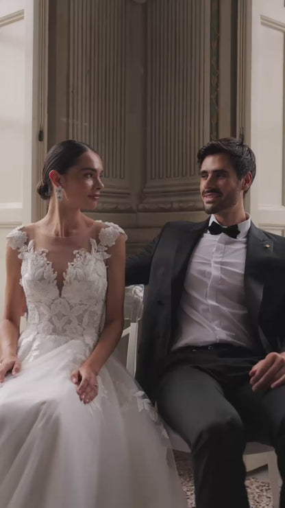 Rema A-line Illusion Ivory Wedding dress