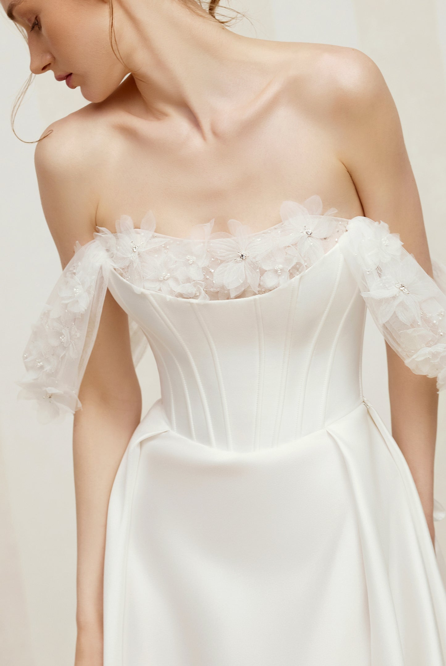 Dolorosa A-line Off-shoulder/Drop shoulders Milk Wedding dress